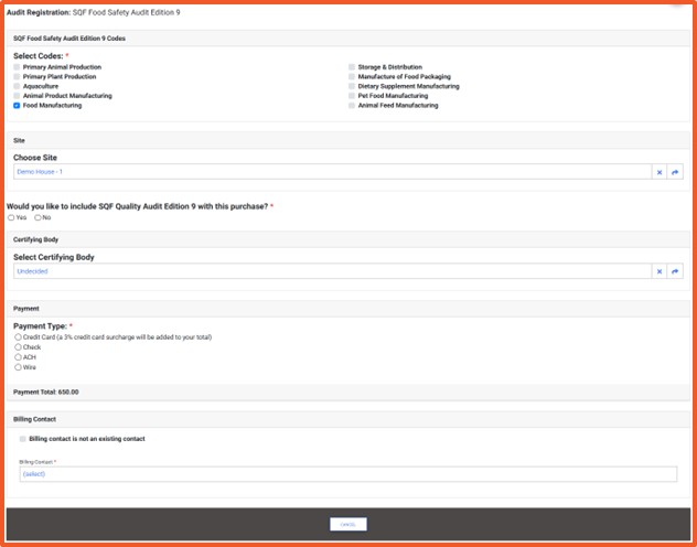 • Un compte de base de données d'évaluation SQF actif avec inscription des utilisateurs et renseignements sur l'entreprise complétés.