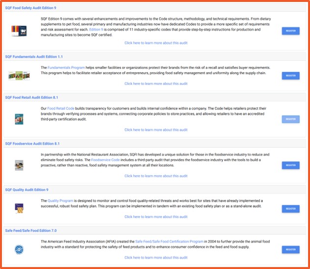 • Connaissance du (s) code (s) SQF (s) sur le (s) rapport (s) de votre site fera l'objet d'une vérification.