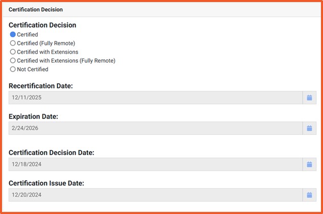 稽核已關閉,並且 SQF 評估資料庫中更新網站的認證狀態。將發出具有輸入的詳細信息的證書,有效期為一年。