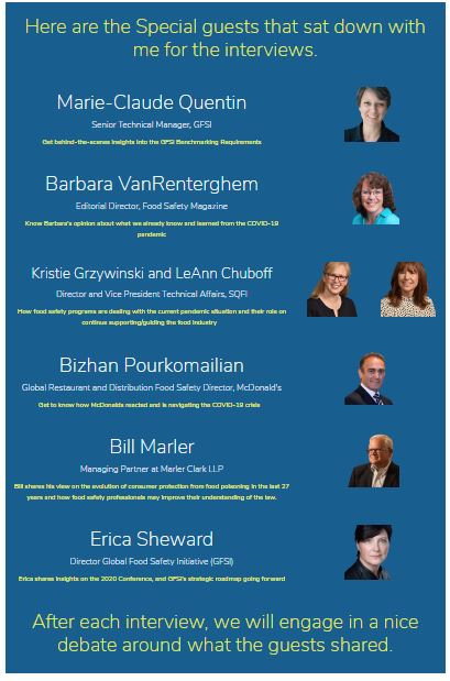 我们很高兴能为此列入议程 共享知识组 讨论食品安全计划如何应对当前的疫情形势及其在继续支持/指导食品行业方面的作用。